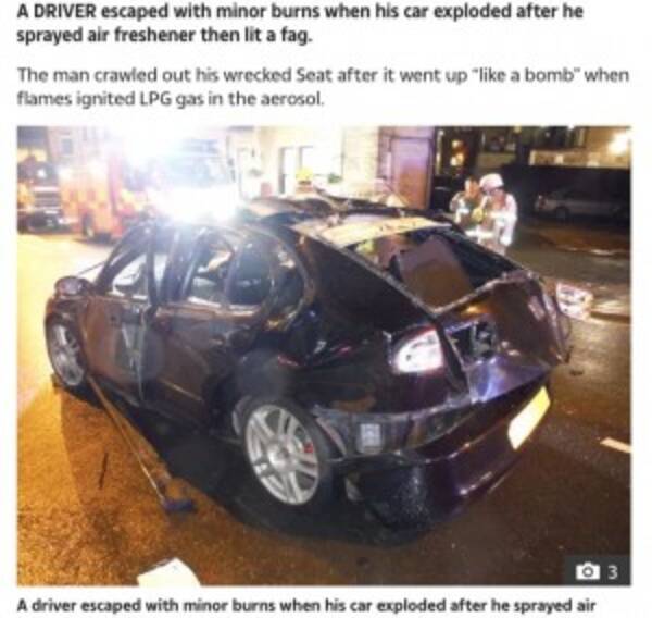 車内で芳香剤をスプレーした男性 タバコに火をつけ車が大爆発 英 19年12月19日 エキサイトニュース